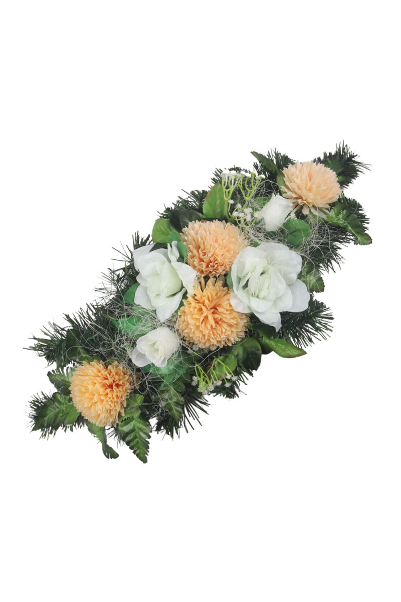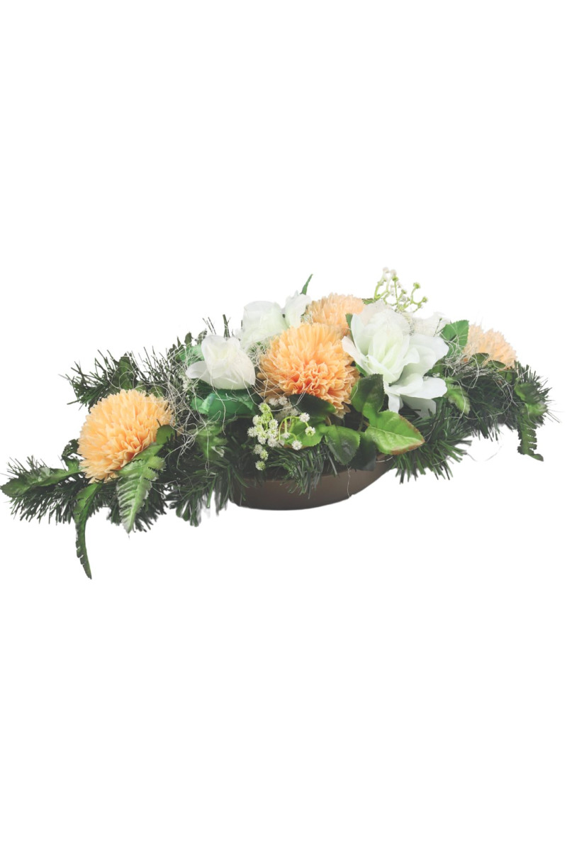 Aranžmán miska betónová, ruže, chryzantémy, ruže s listom, rumora, prízdoba.