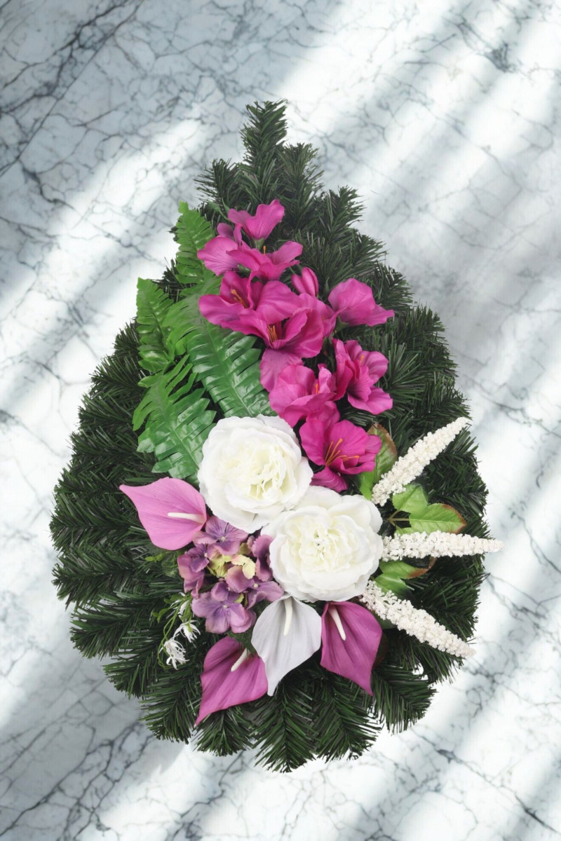 Veniec slza smrek 909, gladioly, ruže, kály a prízdoby