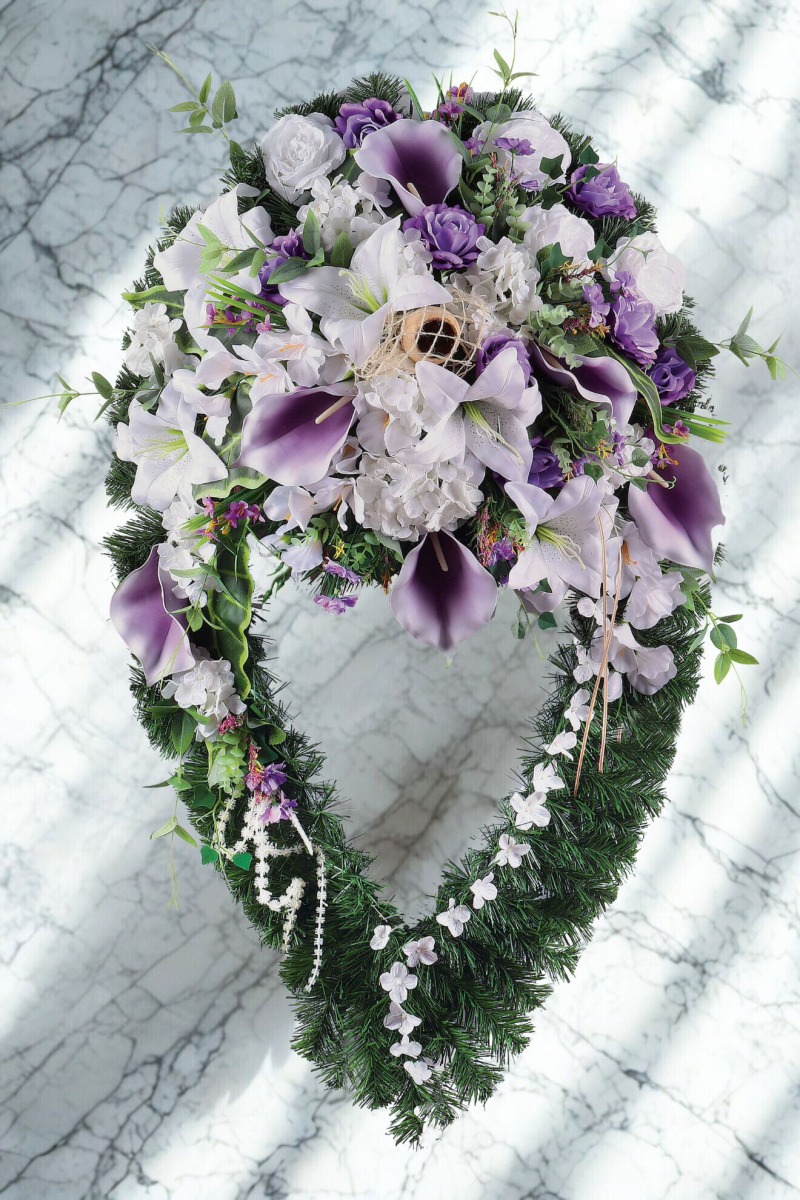 Veniec slza veľká prázdny stred smrek 919, hortenzia, gladiola, ruža, ľalia, kála, doplnky