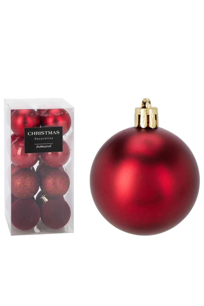 Guľa vianoč. 8 cm, set 16 ks/ farb. červená