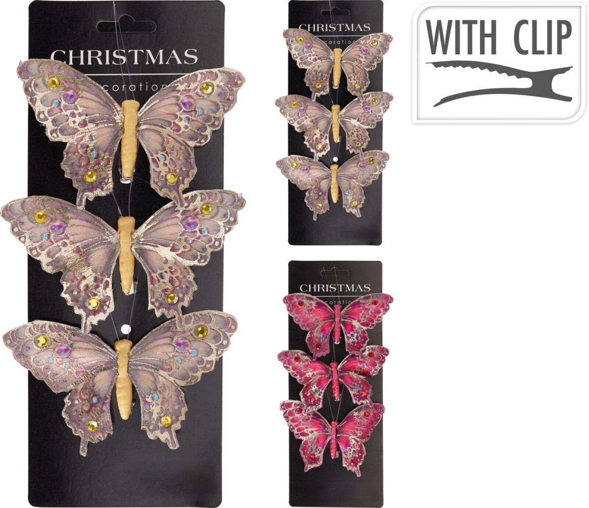 Motýľ s klipom 13 cm / set 2 ks/ 3 farb.